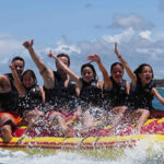 Descripción: Tubo banana hinchable arrastrado por barco o embarcación a motor. Con asas adherentes y cómodas para 6 personas. Incluye bomba hinchadora y cabo de arrastre.