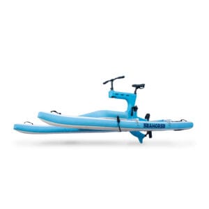 Descripción: Bicicleta sobre catamarán hinchable. Incluye hélice, timón y escalera para ascender. Incluye bolsa de trasnporte.