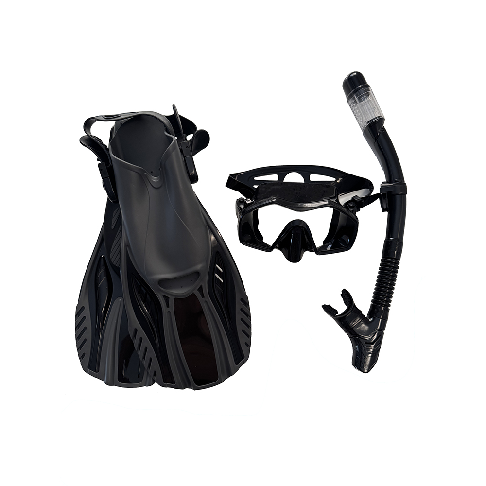 Descripción: Kit de aletas, tubo y gafas para buceo. Lente de vidrio templado, mÔscara de silicona, aletas TPE + PP.
